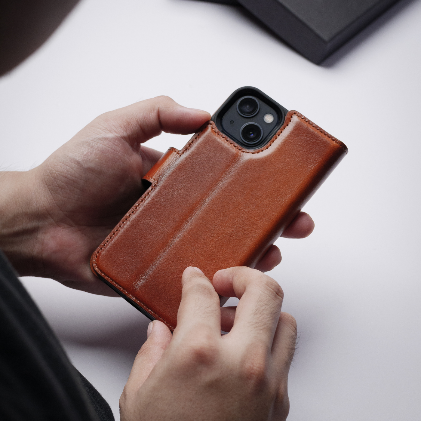 Het moderne leren hoesje combineert hoogwaardig leer met robuuste bescherming. Onze hoesjes zijn beschikbaar in een moderne 2-in-1 magnetische book en backcover: The Magic Case.